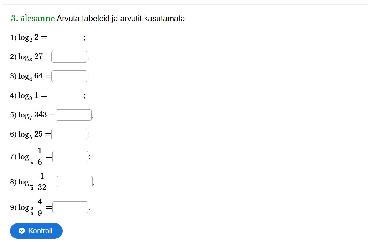 Ülesanne: Kirjutada võrdus ilma logaritmi sümbolita