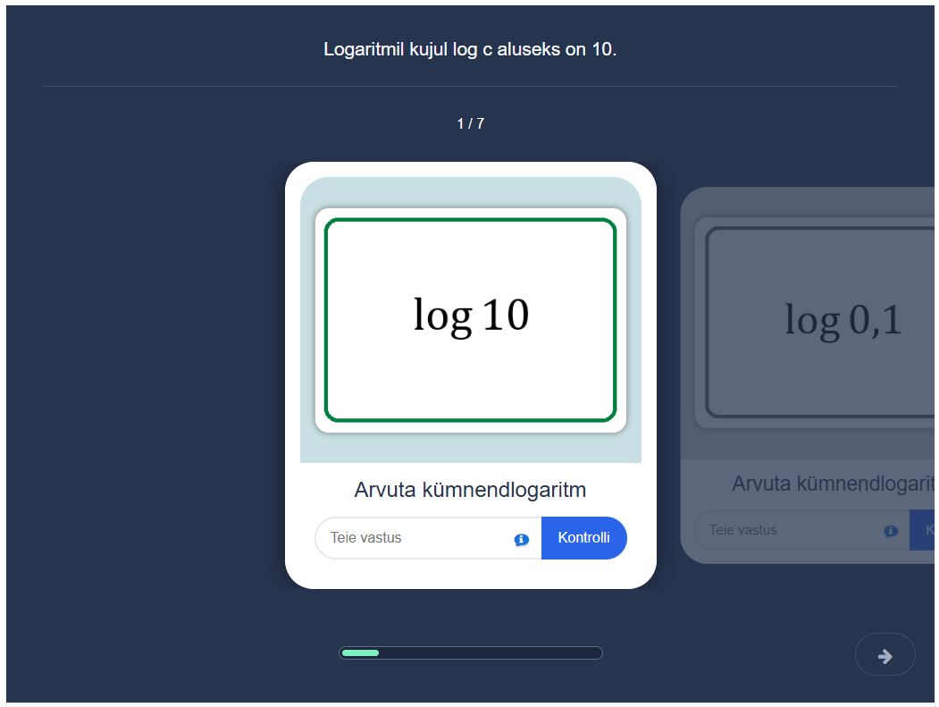 See õppekaartide kogu aitab õpilastel harjutada kümnendlogarithmi arvutamisel.