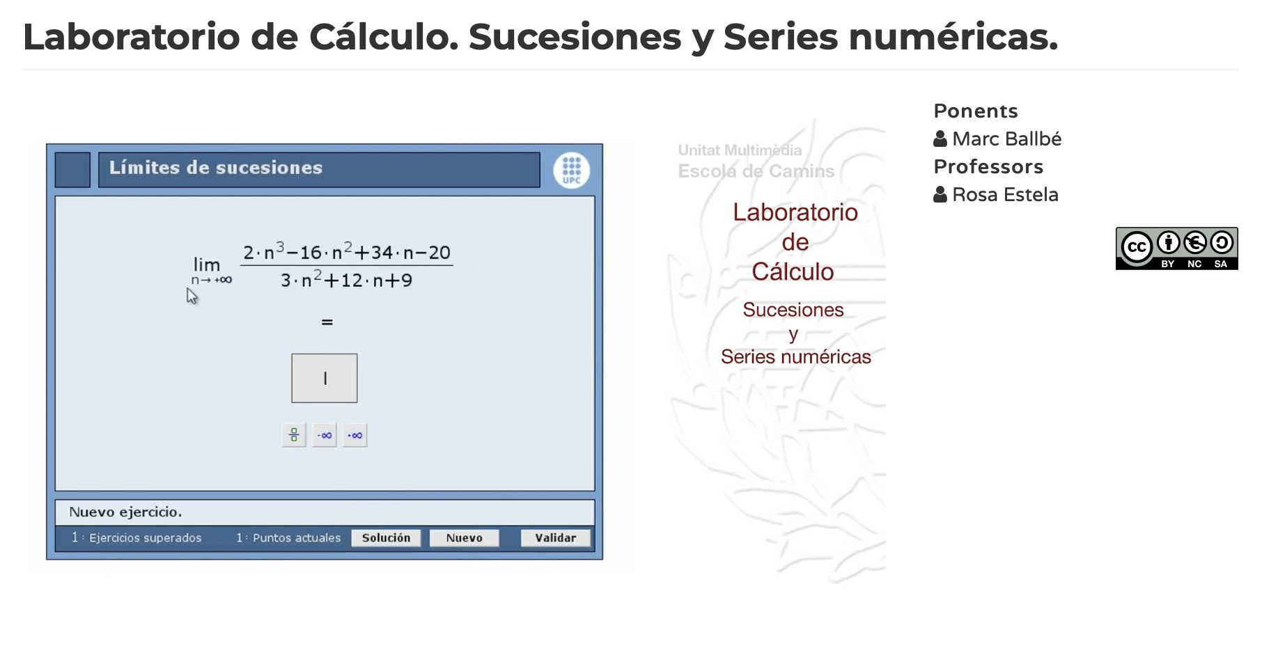 Video laboratorio. Sucesiones y series numéricas (video). Este video es un taller dónde se presentan distintos ejercicios a resolver de sucesiones y series numéricas. El ponente ayuda al estudiante en el proceso de resolución.