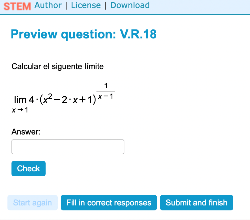 Funciones, Límites, Función exponencial, Pregunta interactiva, Moodle