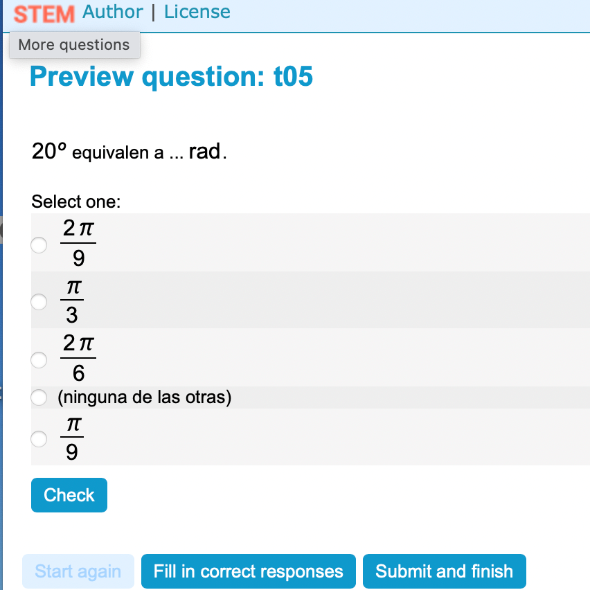 Trigonometría, Ángulos, Radianes, Grados, Pregunta interactiva, Moodle