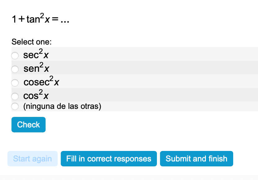 Pregunta interactiva. Trigonometría. Fórmulas trigonométricas