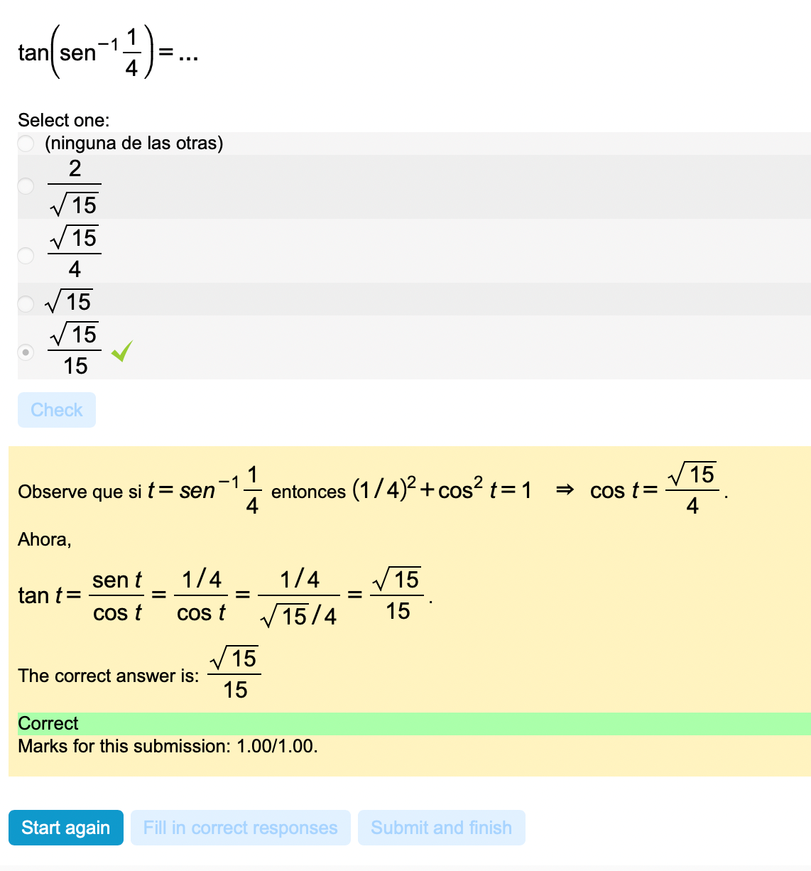 Trigonometría, Tangente, Arcoseno, Pregunta interactiva, Moodle