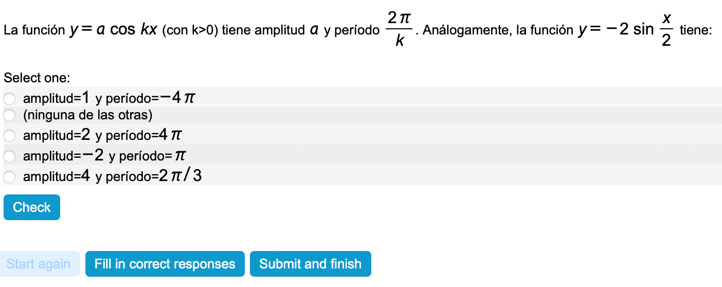 Trigonometría, Coseno, Amplitud, Periodo, Pregunta interactiva, Moodle