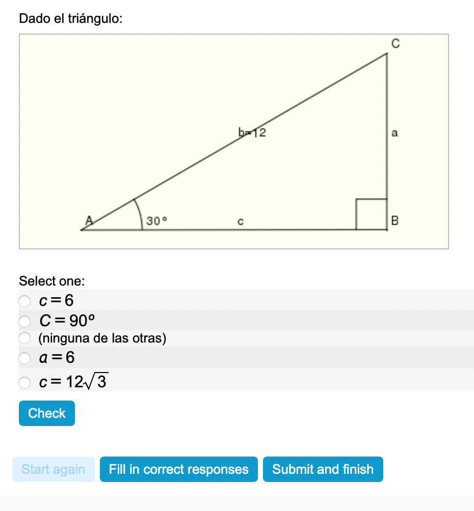 Trigonometría, Triángulo rectángulo, Pregunta interactiva, Moodle