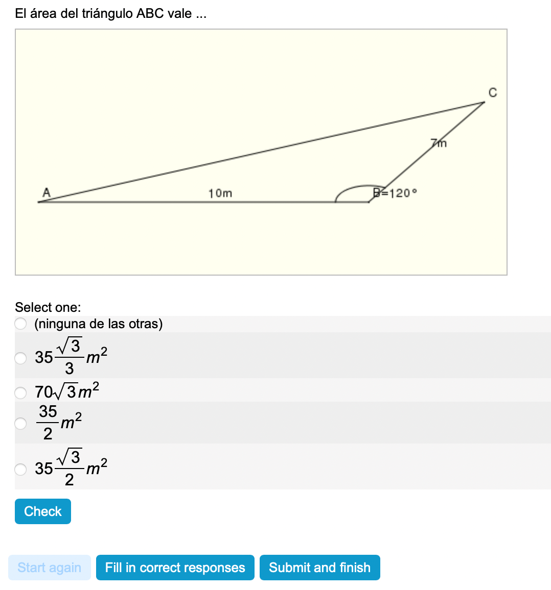 Trigonometría, Área, Triángulo, Pregunta interactiva, Moodle