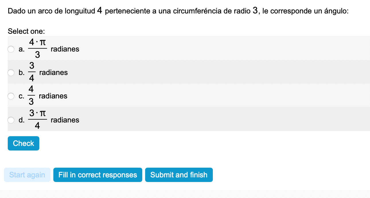 Trigonometría, Arco, Ángulo, Pregunta interactiva, Moodle