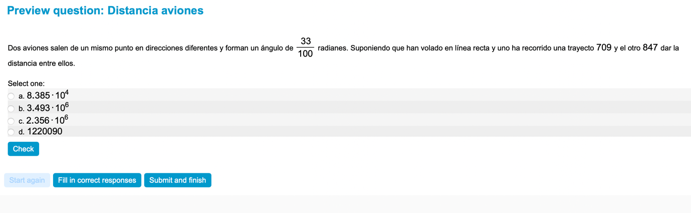 Trigonometría, Distancia, Pregunta interactiva, Moodle