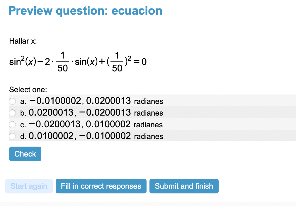 Trigonometría, Ecuación, Pregunta interactiva, Moodle