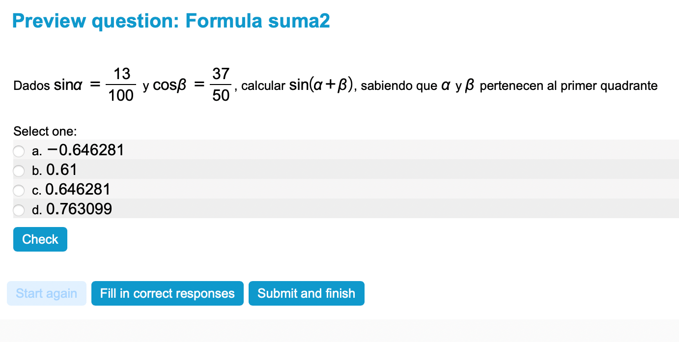 Trigonometría, Seno, Suma, Pregunta interactiva, Moodle