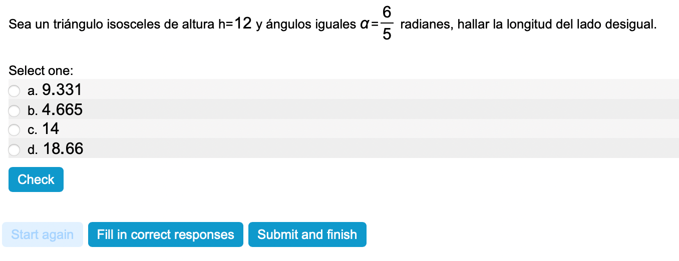 Trigonometría, Triángulo, Isósceles, Pregunta interactiva, Moodle