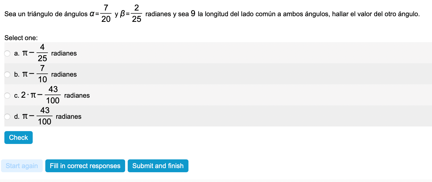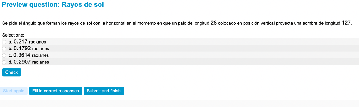 Trigonometría, Ángulo, Pregunta interactiva, Moodle