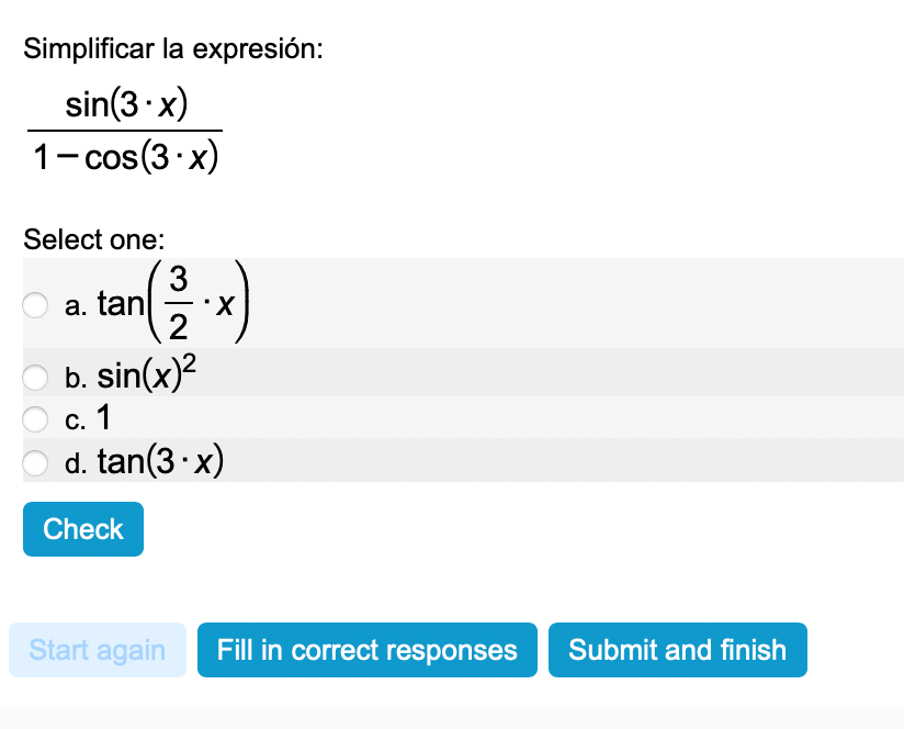 Trigonometría, Simplificar, Pregunta interactiva, Moodle