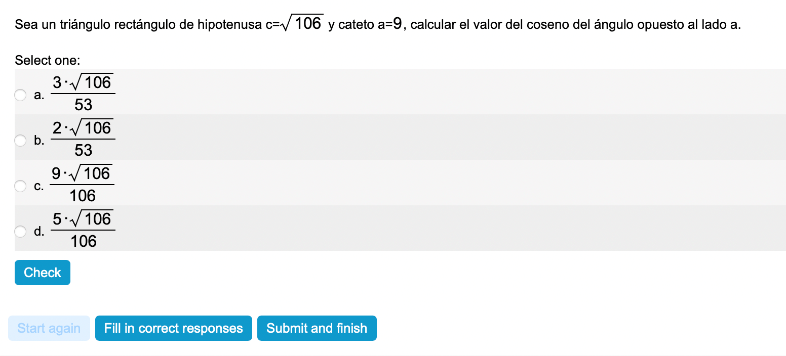 Coseno, Ángulo, Triángulo rectángulo, Pregunta interactiva, Moodle