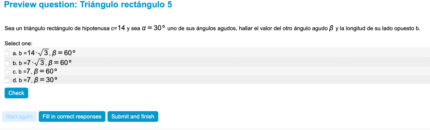 Trigonometría, Triángulo rectángulo, Ángulo, Pregunta interactiva, Moodle