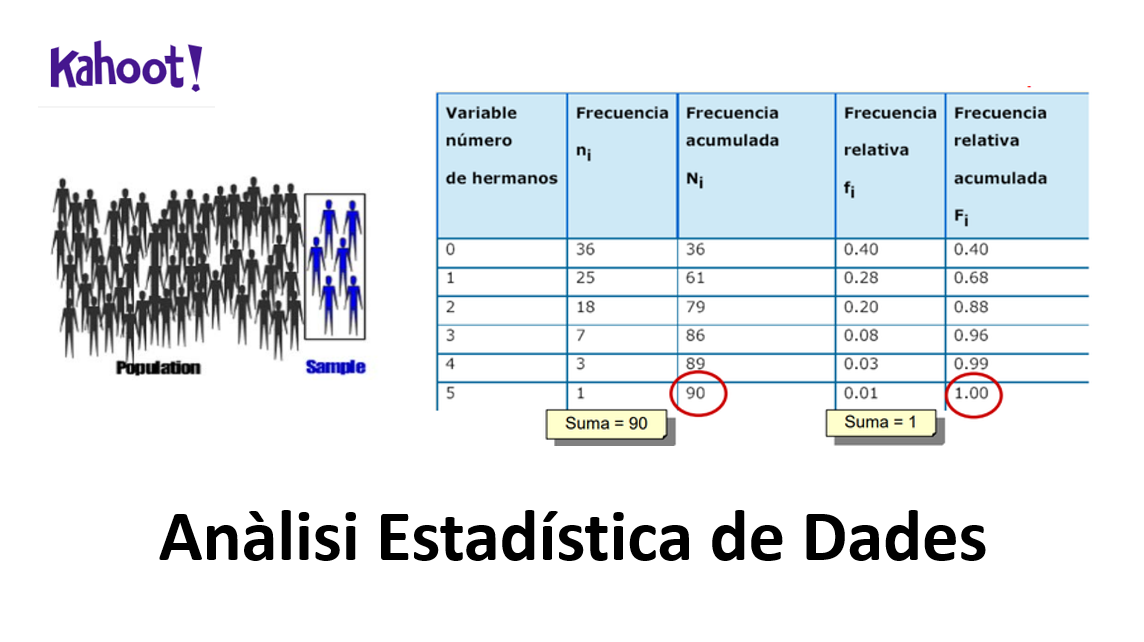 Estadística Descriptiva, Població, Mostra, Estadístic, Paràmetres d’una població, Kahoot