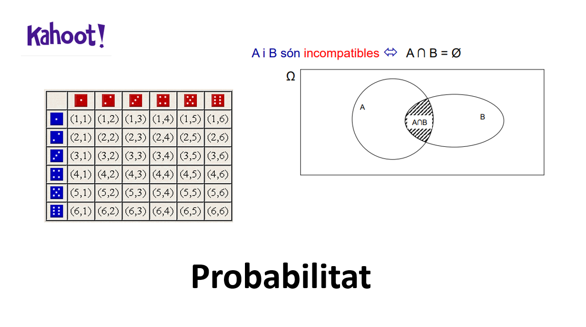 Probabilitat, Experiment aleatori, Espai mostral, Esdeveniments incompatibles, Kahoot