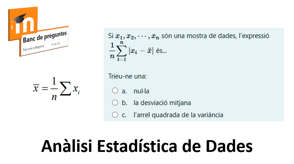 Grup de 9 preguntes de test per a Moodle sobre coneixements bàsics d’Anàlisi Estadística de Dades: paràmetres d’una població i estadístics d’una mostra.