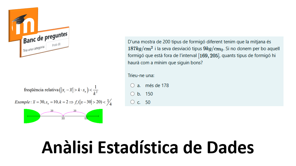 Grup de 5 preguntes de test per a Moodle sobre coneixements d’Anàlisi Estadística de Dades: Teorema de Txebyshev.