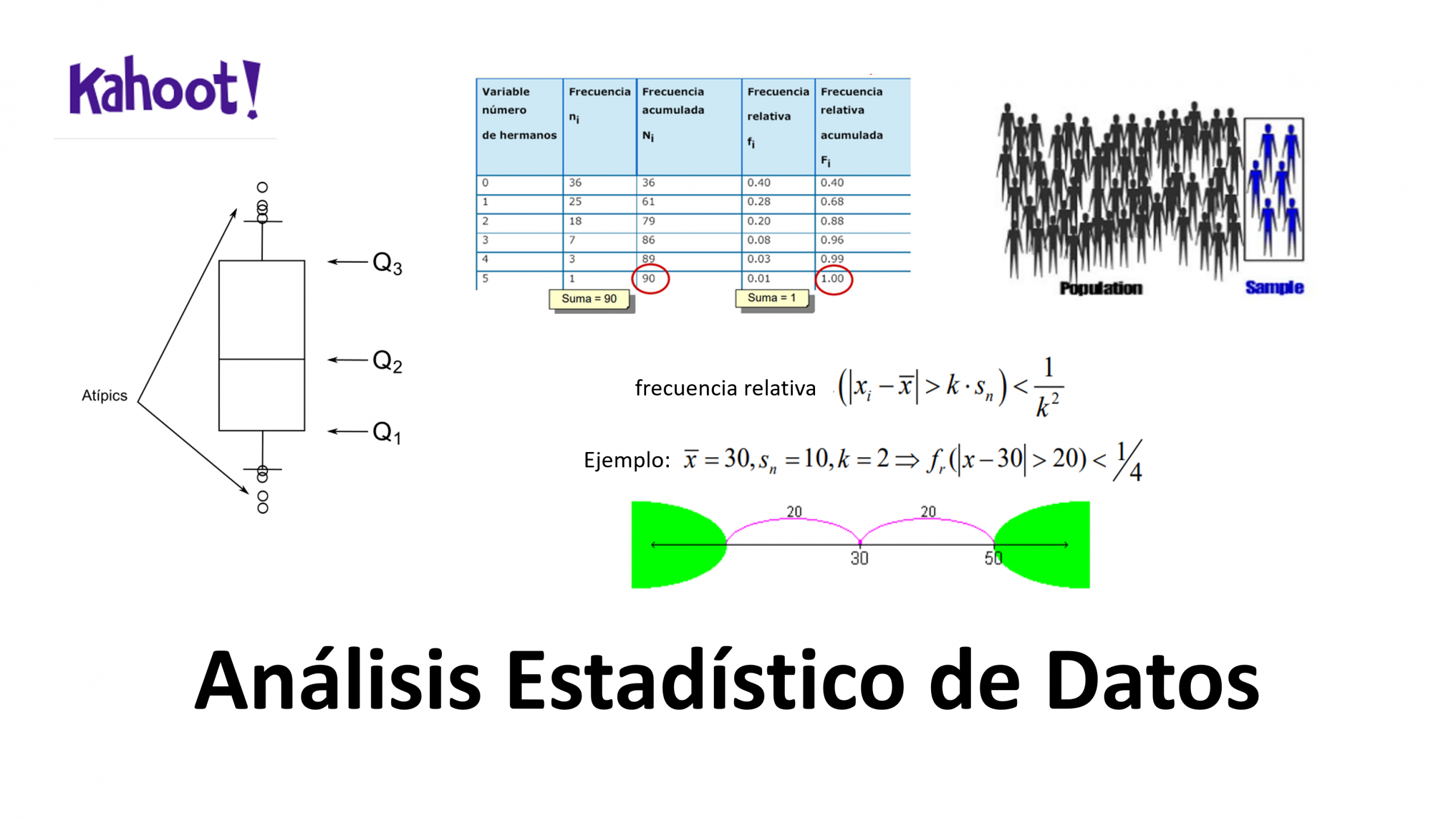 Estadística Descriptiva, Media, Cuartiles, Desviación, Boxplot, Desigualdad de Txebyshev, Kahoot