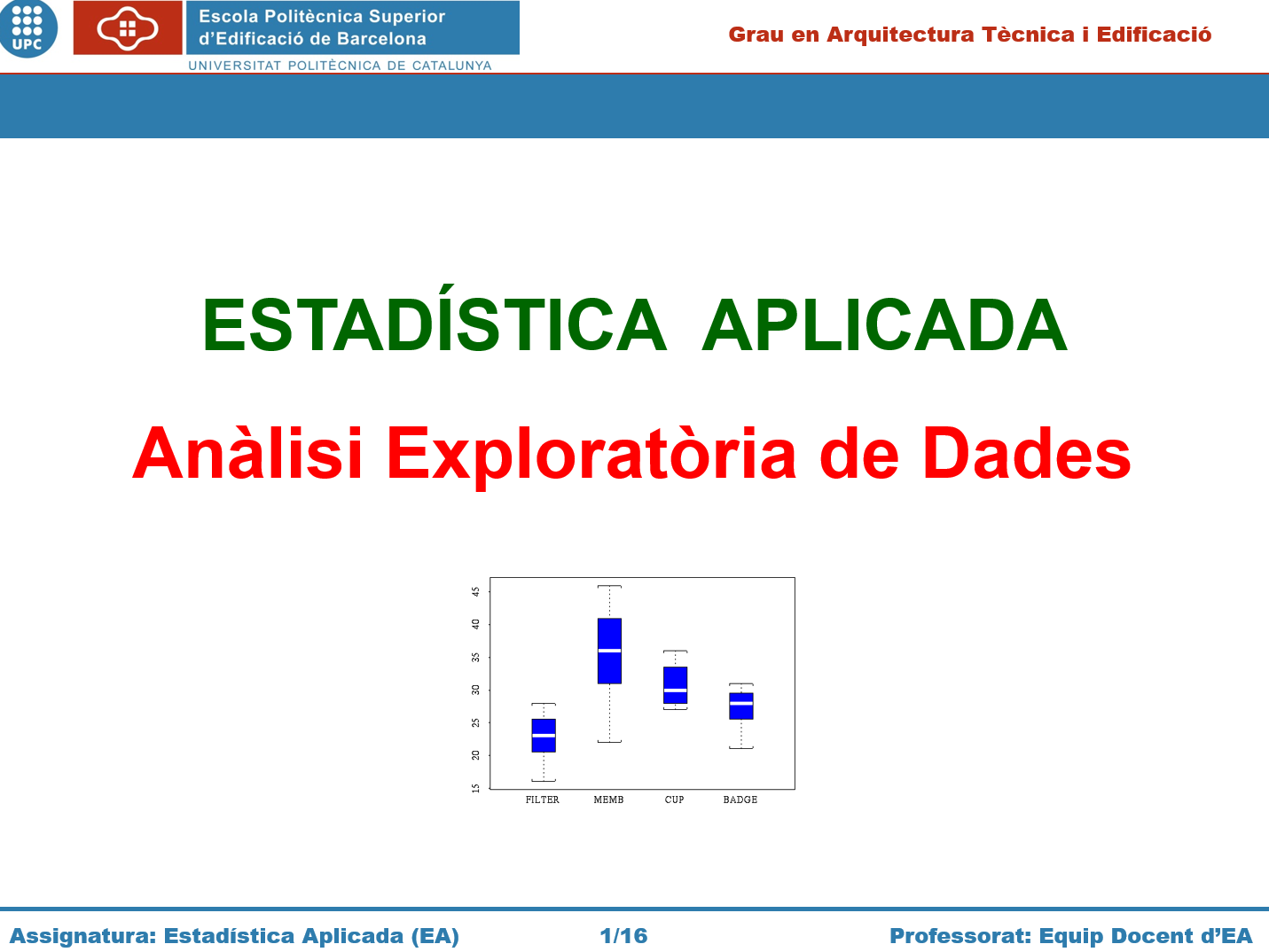 Continguts que s’hi tracten: Definicions bàsiques, estadístics descriptius de centralització, posicionament i de dispersió. Teorema de Txebyshev i boxplots.