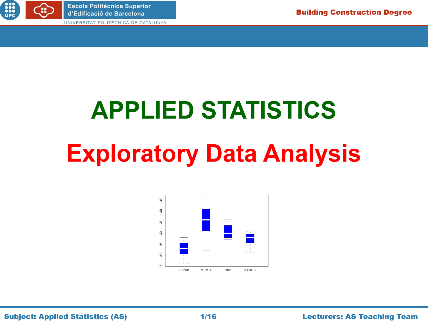 Slide show set for a basic course in Applied Statistics on Exploratory Data Analysis. The document contains illustration and calculation examples. Editable pptx file.