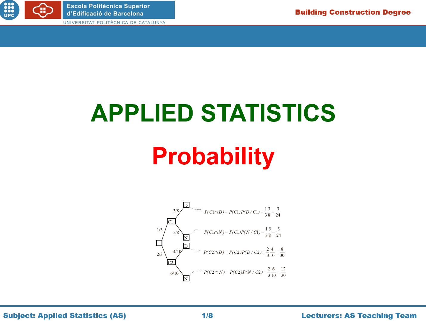 Slide show set for a basic course in Applied Statistics on Probability. The document contains illustration and calculation examples. Editable pptx file.