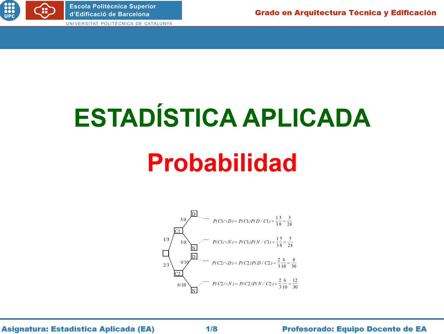 Juego de transparencias para un curso básico de Estadística Aplicada sobre Probabilidad. El documento contiene ejemplos de ilustración y cálculo. Archivo pptx editable.
