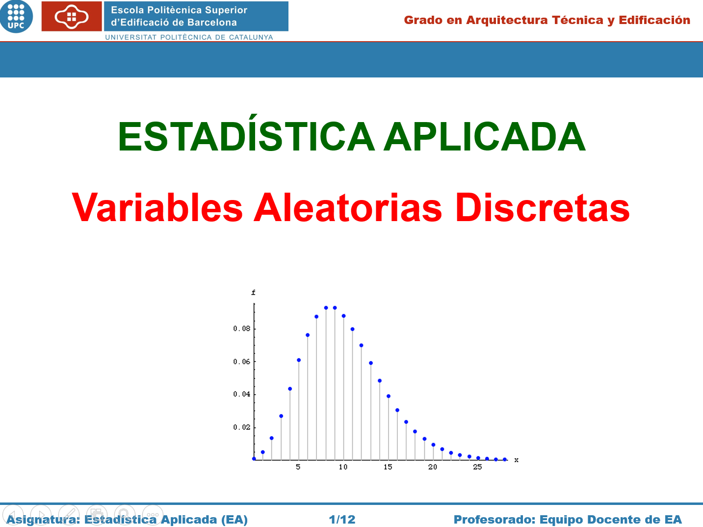 Juego de transparencias para un curso básico de Estadística Aplicada sobre Variables Aleatorias Discretas. El documento contiene ejemplos de ilustración y cálculo. Archivo pptx editable.