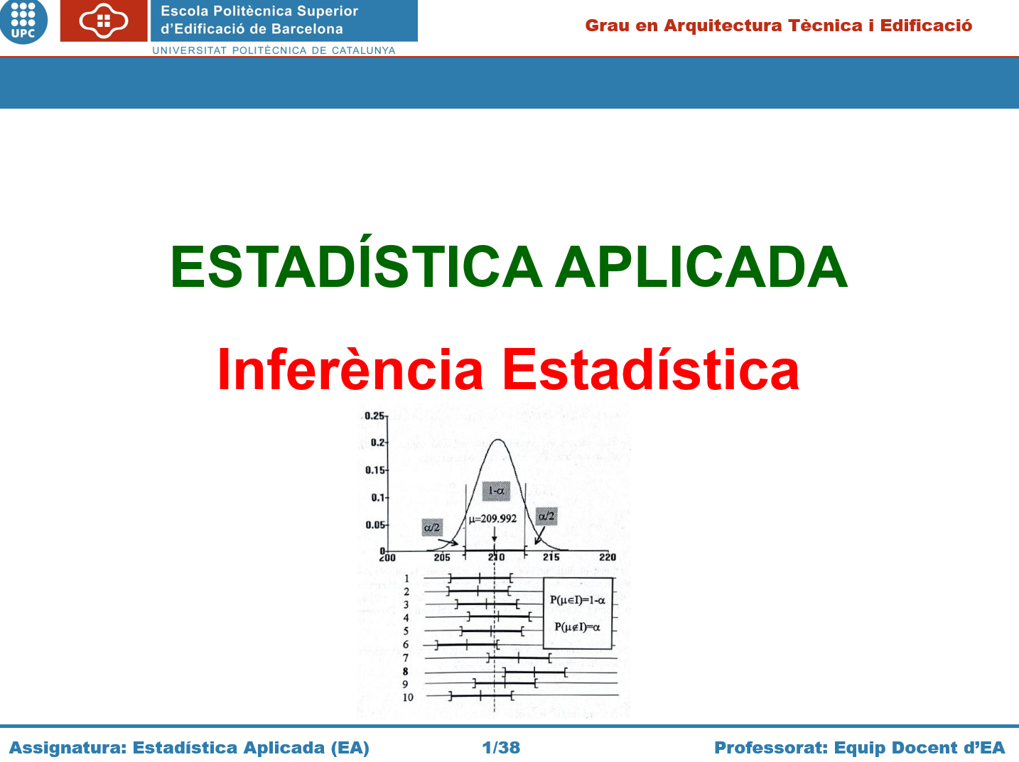 Joc de transparències per a un curs bàsic d’Estadística Aplicada sobre Inferència Estadística El document conté exemples d’il·lustració i de càlcul. Fitxer ppt editable.
