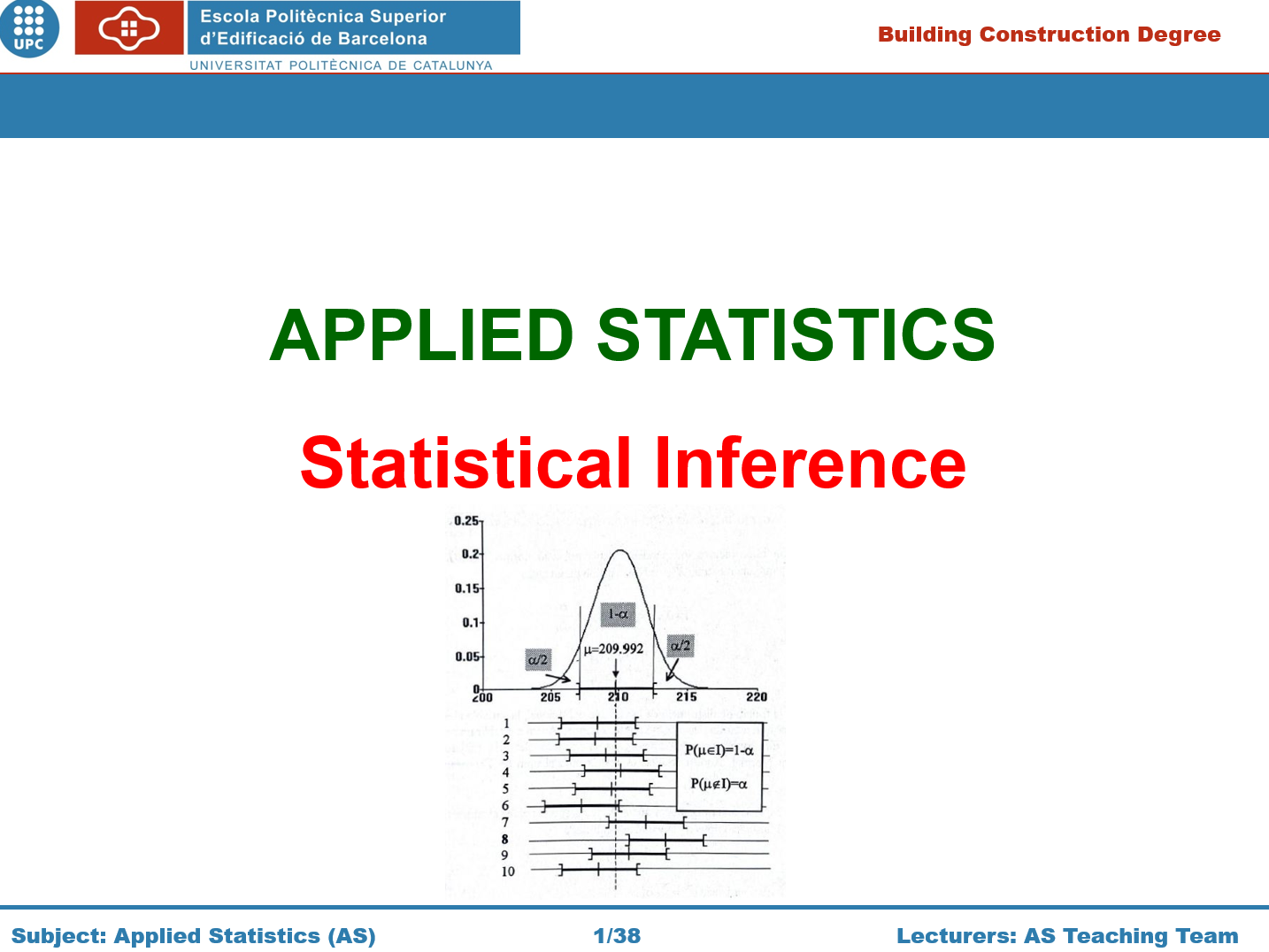 Slide show set for a basic course in Applied Statistics on Statistical Inference. The document contains illustration and calculation examples. Editable pptx file.