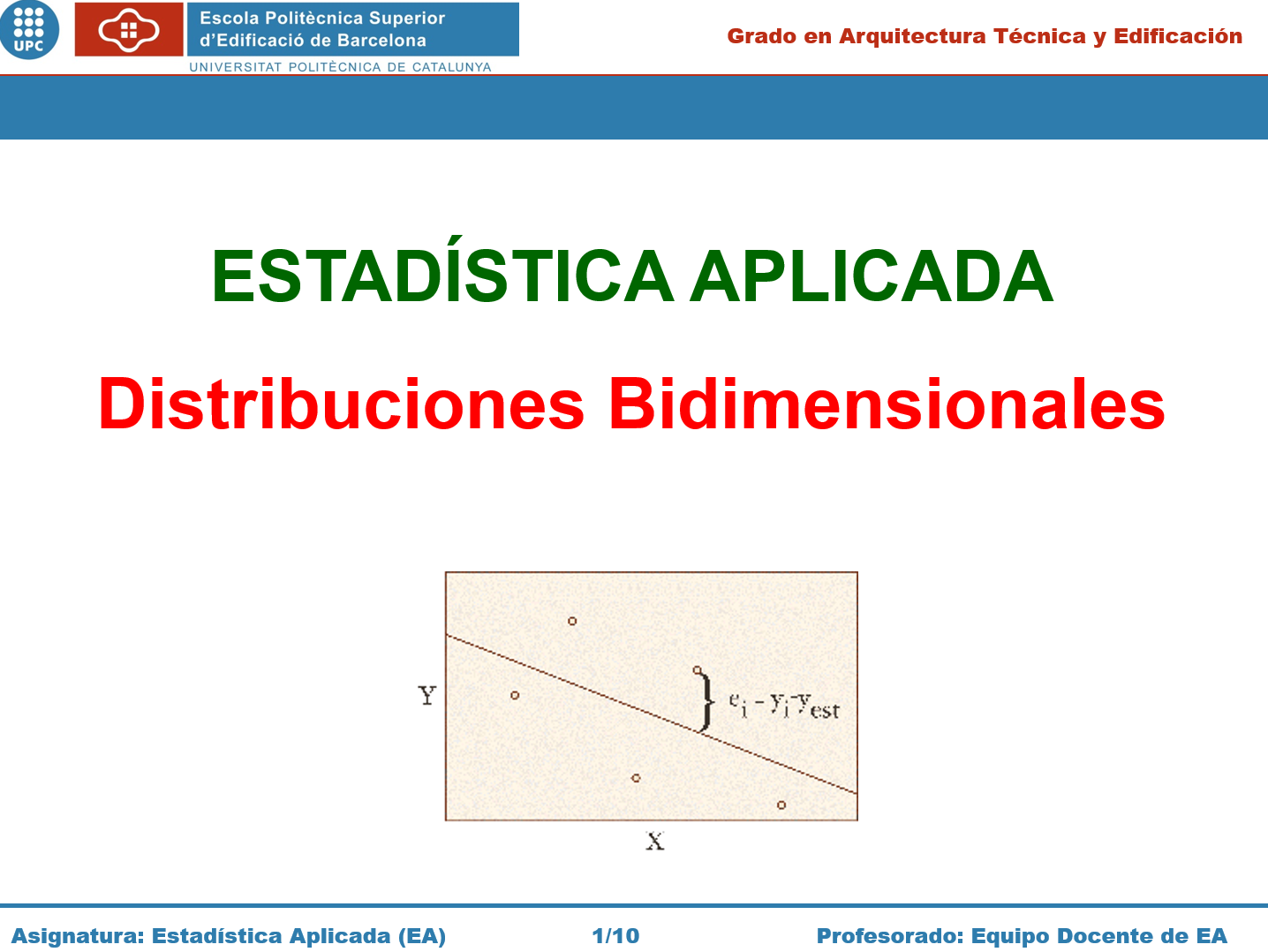 Juego de transparencias para un curso básico de Estadística Aplicada sobre Distribuciones Bidimensionales. El documento contiene ejemplos de ilustración y cálculo. Archivo pptx editable.
